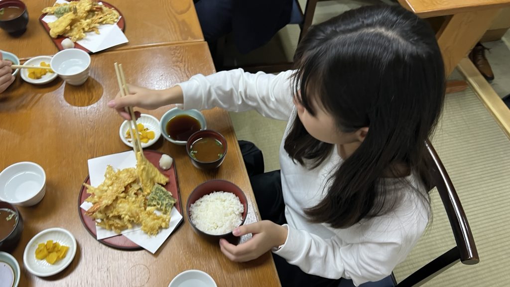 10/31 修学旅行④昼食2025年10月31日 お昼ご飯は浅草で180年以上の歴史がある天麩羅屋さんの三定さんで昼食です。 サクサクの天ぷらでボリュームもありみんなお腹いっぱいです。 未分類Posted by hosaka-es@nirasaki