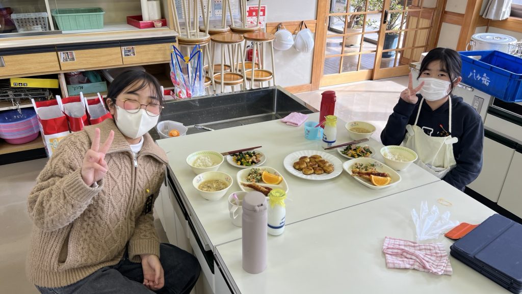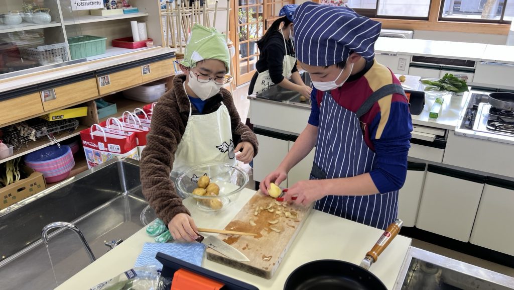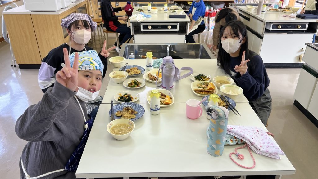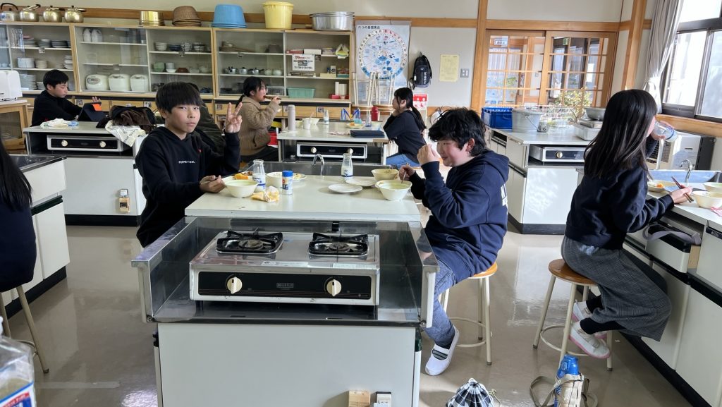 2年間の家庭科学習のまとめの調理実習をしました。最初はお湯を沸かしてお茶を飲み、次は米を炊く味噌汁を作る、次は卵料理炒め料理と進化してきた子どもたちの調理技術も今回は自分で料理を選んで調理するところまで来ました。うちはIHなのでガスが…などの声や心配な包丁さばきも目にしましたが、子どもたちの成長には信じて任せる・できないからこそやってできるようにさせることの大切さを感じました。