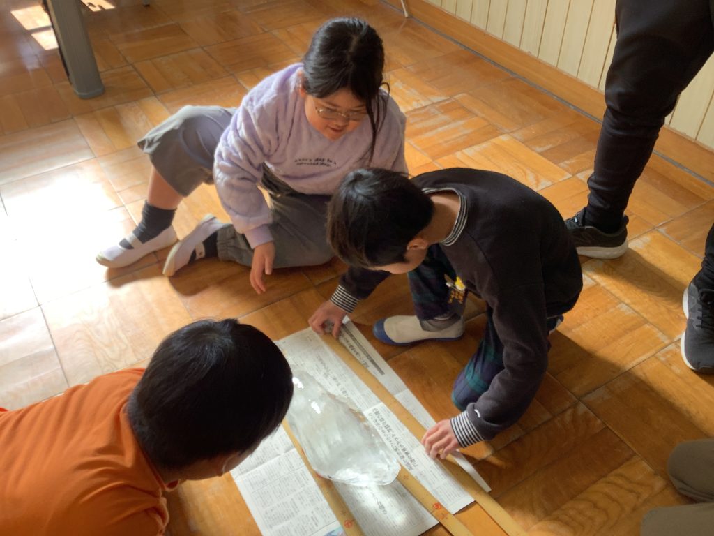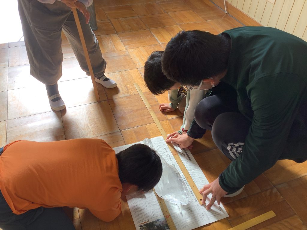 2年生が長さの勉強をしていたので2年生の教室に持って行って、ものさしではかってもらいました。