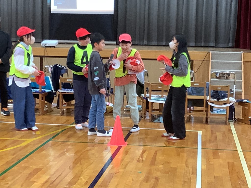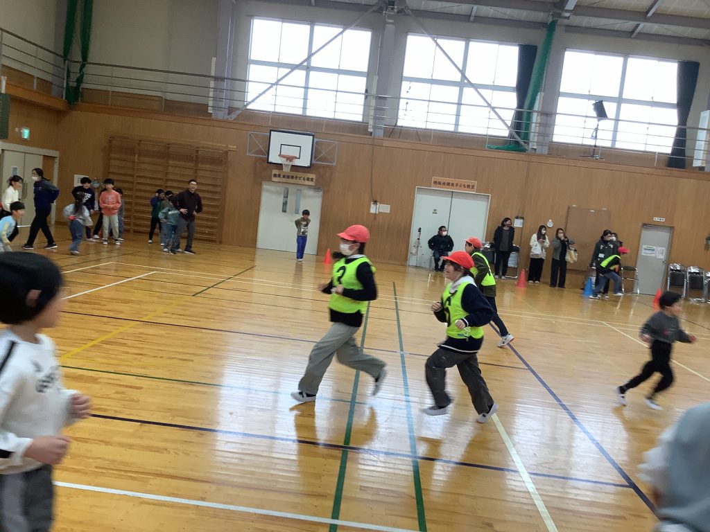 全校でしっぽとりゲームを行いました。鬼は6年生。