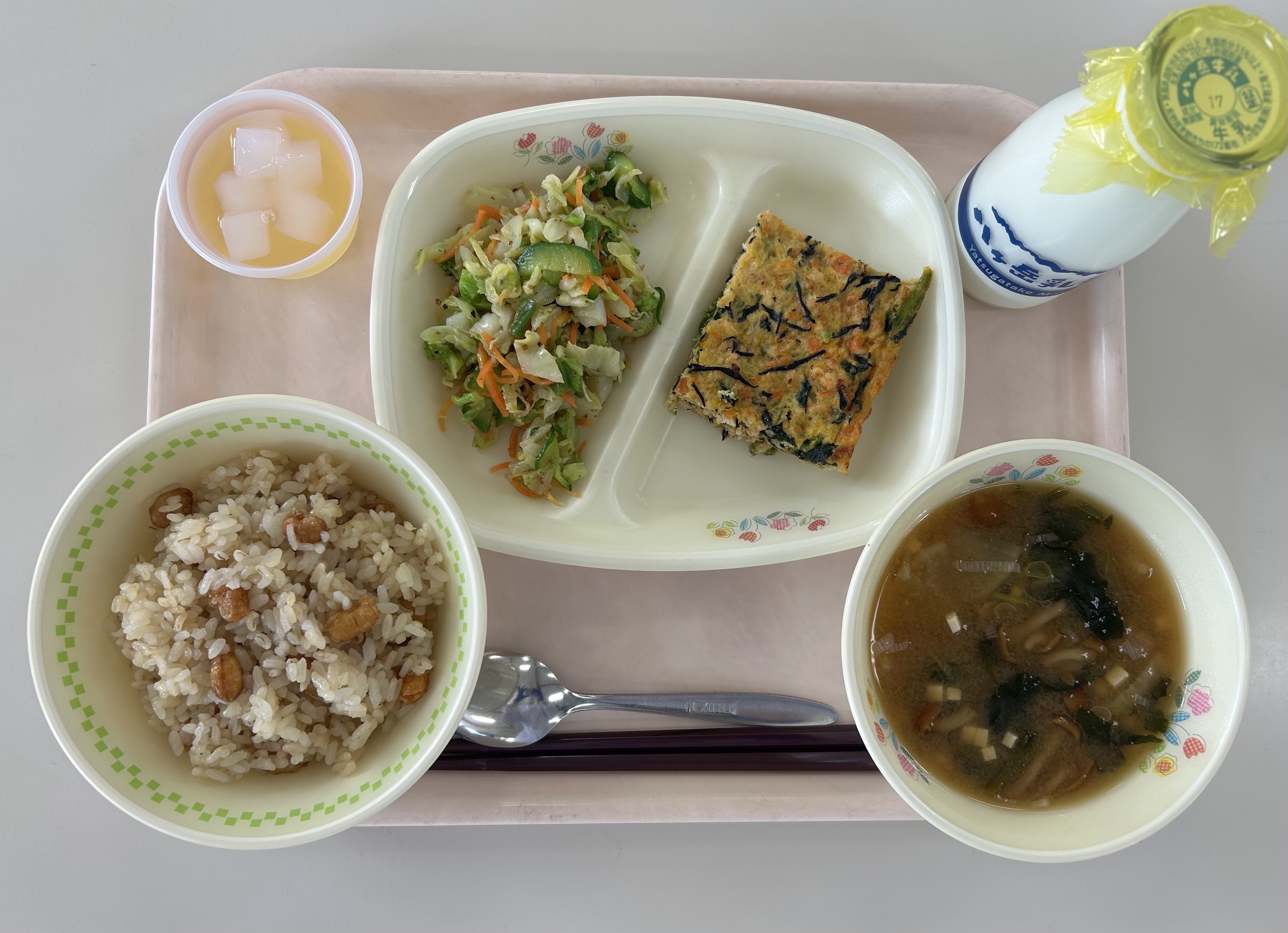 昨日、1年生の給食がスタートしました✨ 1年生の入学祝いと、2〜6年生の進級祝いのお赤飯です㊗️ 1年生も、「給食おいしい〜!」と言ってたくさん食べてくれました ...